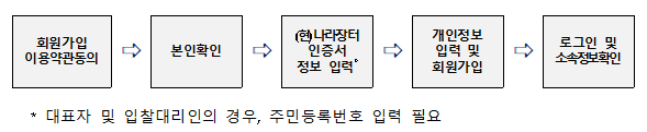 본인확인을 위한 휴대전화, 나라장터 인증서가 필요하고 조달청 누리집 및 나라장터 공지사항등을 참조하라고 나와있다.